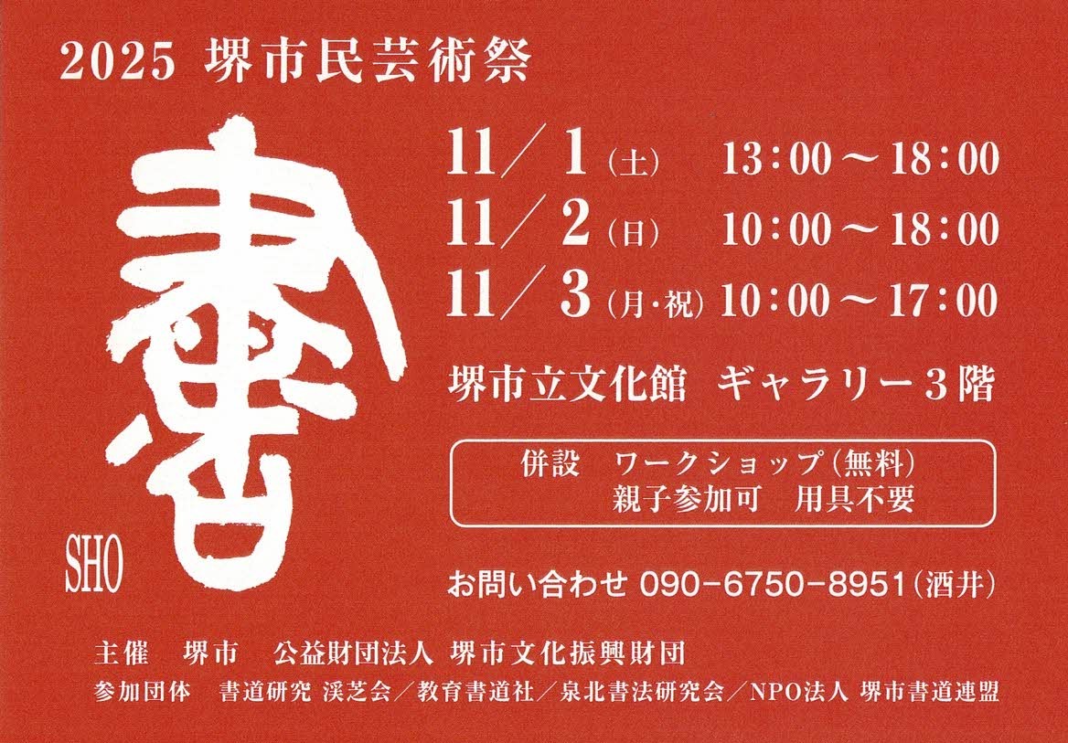 | 主催団体 | 書道研究 渓芝会・教育書道社・泉北書法研究会・NPO法人堺市書道連盟 |