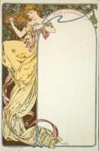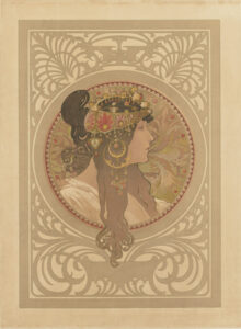 「ミュシャ・スタイル」「夢二式美人」と称され、時代をとらえ、新しい表現として 人々を魅了したふたりの作品を紹介します。なかでも似ているポーズ、題材、モチーフを描いた作品を並べることで見えてくる、それぞれ独自のスタイルの特徴とともにふたりの共通性に注目します。