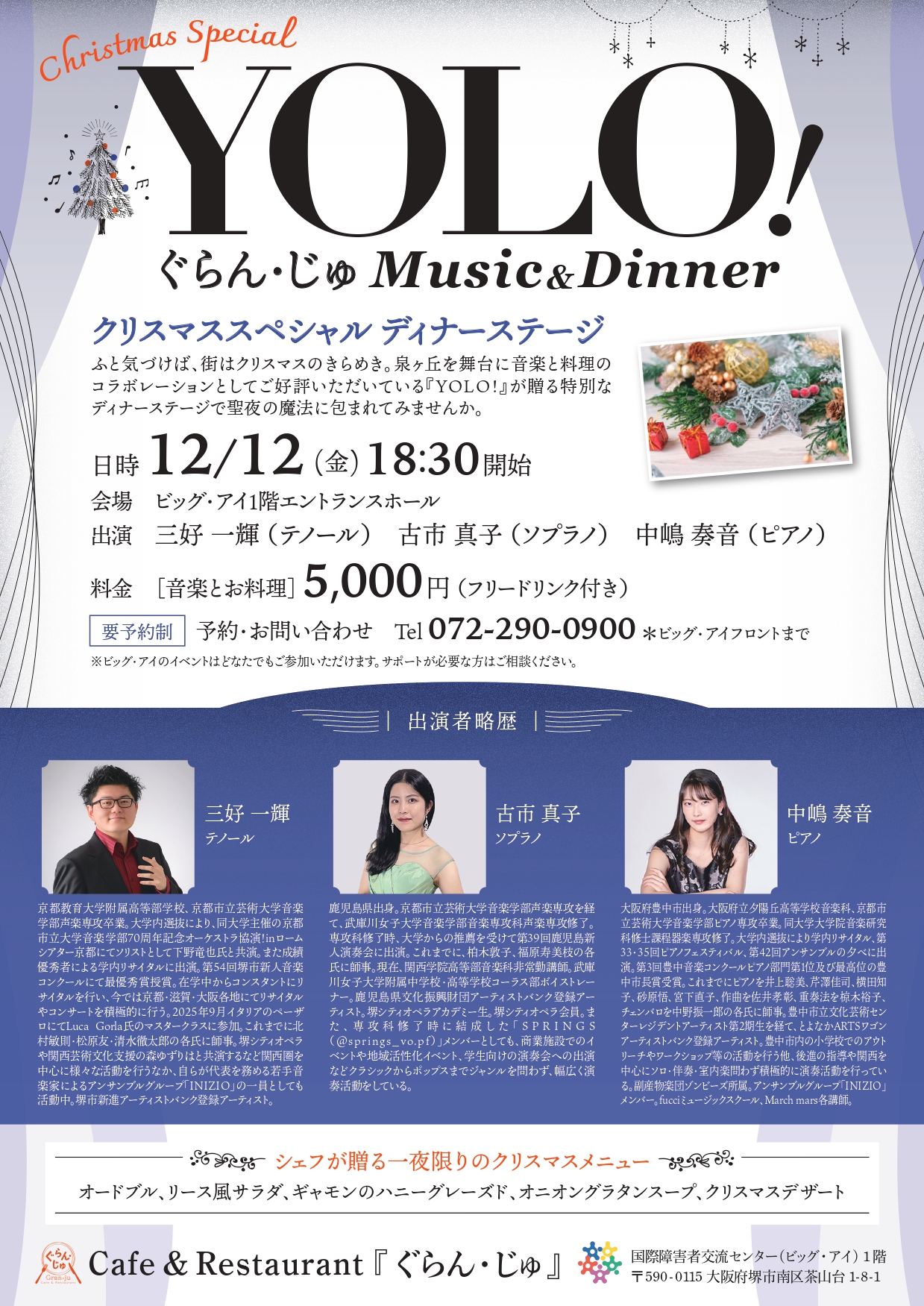 料金:[音楽とお料理] 5,000円 (フリードリンク付き)