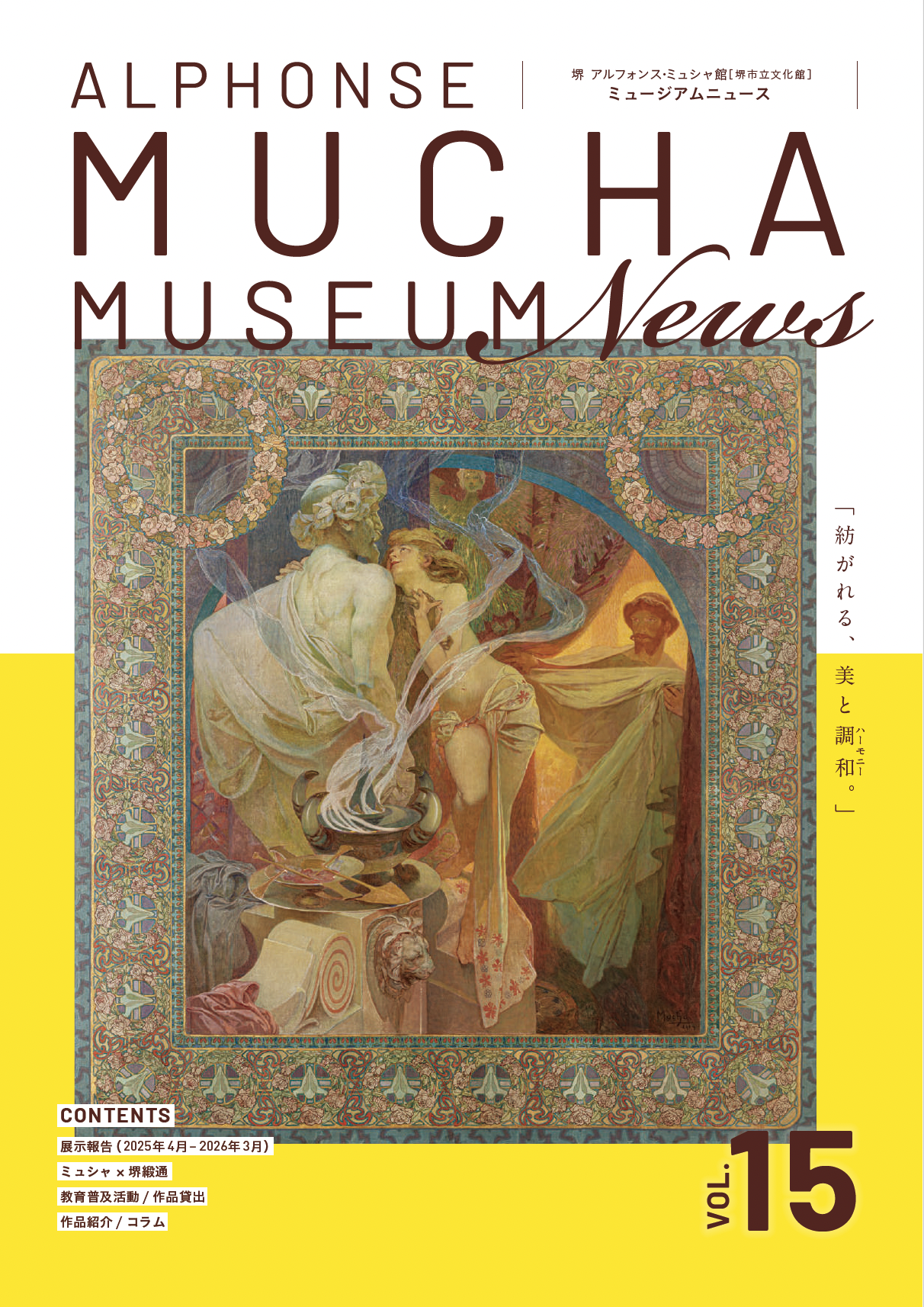 堺 アルフォンス・ミュシャ館では、 「アルフォンス・ミュシャ ミュージアムニュース」を年1回発行しています。実施した展覧会の内容やイベントのレポート、学芸員によるコレクション紹介やコラムを掲載しています。